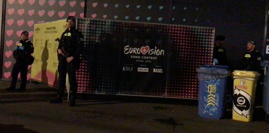 At approximately 9:30PM CEST/8:30PM BST, three Youth Demand supporters were forcibly removed from the St Jakobshalle arena in Basel, Switzerland, during Yuval Raphael’s performance of “New Day Will Rise.” Security guards could be seen assaulting one of the supporters, David, including slapping him and pulling his hair [6]. The three were then placed behind a screen outside the venue by security and held by armed police before being released.