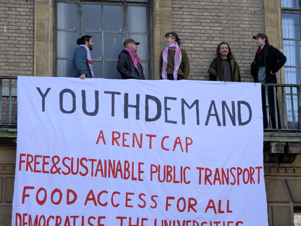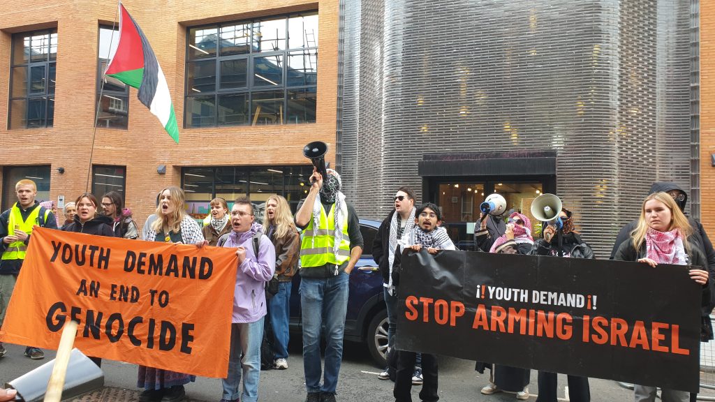 Starting from around 10:30 this morning, groups in seven UK cities have begun engaging in a series of demonstrations. In Leeds, a pair of supporters fly-posted over the windows of Rachel Reeves’ office. Whilst in Manchester and Truro Youth Demand supporters have fly-posted the offices of Lucy Powell and Jayne Kirkham respectively, with posters conveying charter demands from locally-held assemblies.